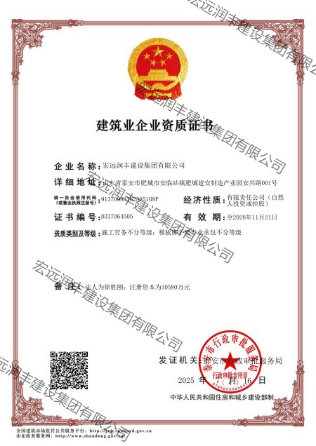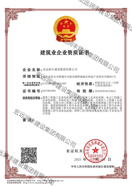 公司资质 宏远润丰建设集团有限公司 > 资质荣誉 > 公司资质